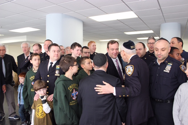 Among the great NYPD Shomrim executives in attendance were President Spencer Strauss, 1st Vice President Gary Marcus, Assistant Sergeant at Arms Josh Zuker, Marshal Philip Weisbord, NYPD Chief Chaplain Rabbi Dr. Alvin Kass, Financial Secretary Murray Ellman, Executive Secretary Stuart Portner, Recipient Coordinator Marcia Portner, and Scott Pomerantz, president National Conference of Shomrim Societies, and president Port Authority NY/NJ Shomrim Society and Boy Scout Troop 76 leader.