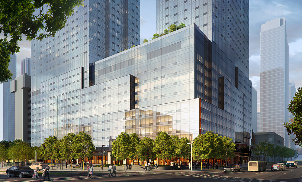 As illustrated in the latest renderings, both towers will rise from a shared ten-story podium. The structures’ façade is uniform throughout and will primarily include reflective glass and steel materials.