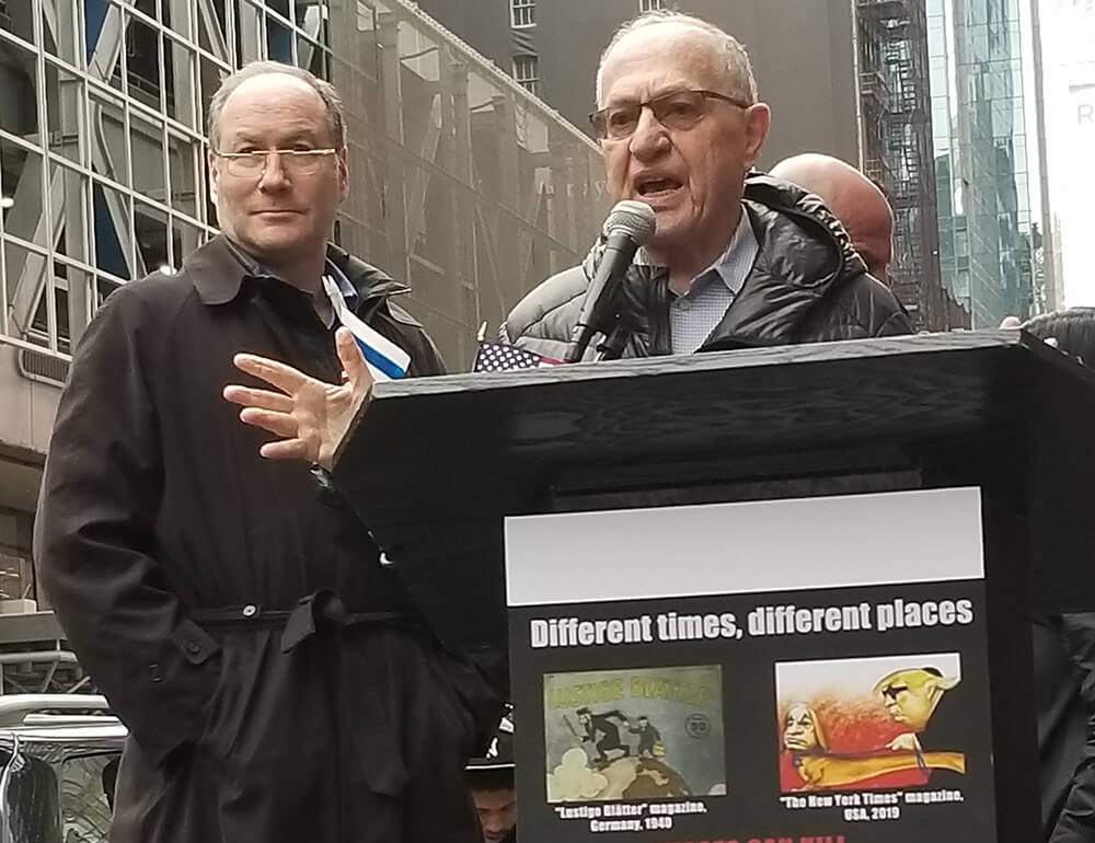 The impressive roster of speakers, including Assemblyman Dov Hikind, Prof. Alan Dershowitz, Rabbi Eli Abadie, and Alex Landsman, all sounded the same note in different ways. The shameful record of the Times, the evil words leading to evil deeds such as the latest terror attack in Poway, Ca’, the Times’ support for the anti-Semitic, anti-Israel Congressional trio of Omar, AOC, and Tlaib, and the need to actively combat the rising anti-Semitism in America and world wide, were all laid out in detail.