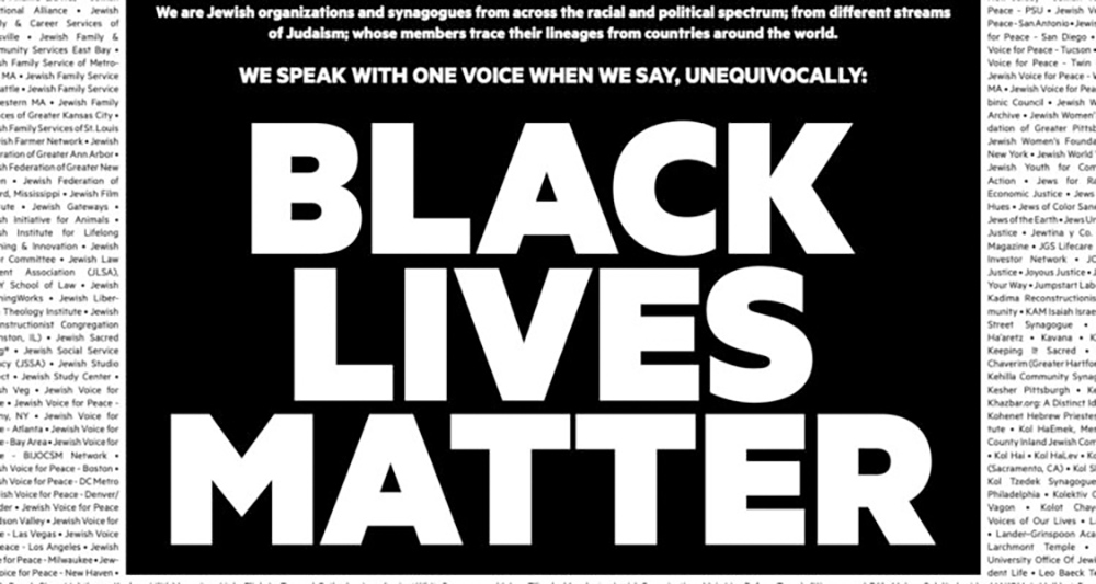 More than 600 Jewish groups and individuals signed a letter published on a full-page ad in the New York Times on Friday saying “Black Lives Matter.”
