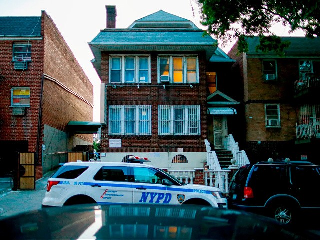 A New York City Police Department vehicle parked outside a complex the Queens borough of New York, on August 22, 2019. (AP Photo/Eduardo Munoz Alvarez)