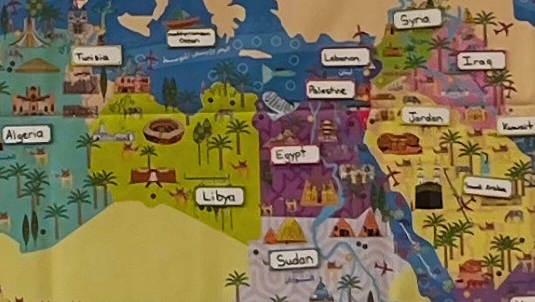 The map, manufactured by Arab education company Ruman, outlines countries in the Middle East and northern Africa. However, what has stirred the controversy is the omission of Israel, replaced by the label “Palestine.” According to the Post report, the map is part of the Arab Culture Arts program taught by Rita Lahoud, funded by Qatar Foundation International, the American arm of Qatar Foundation, a nonprofit organization owned by Qatar’s ruling family.