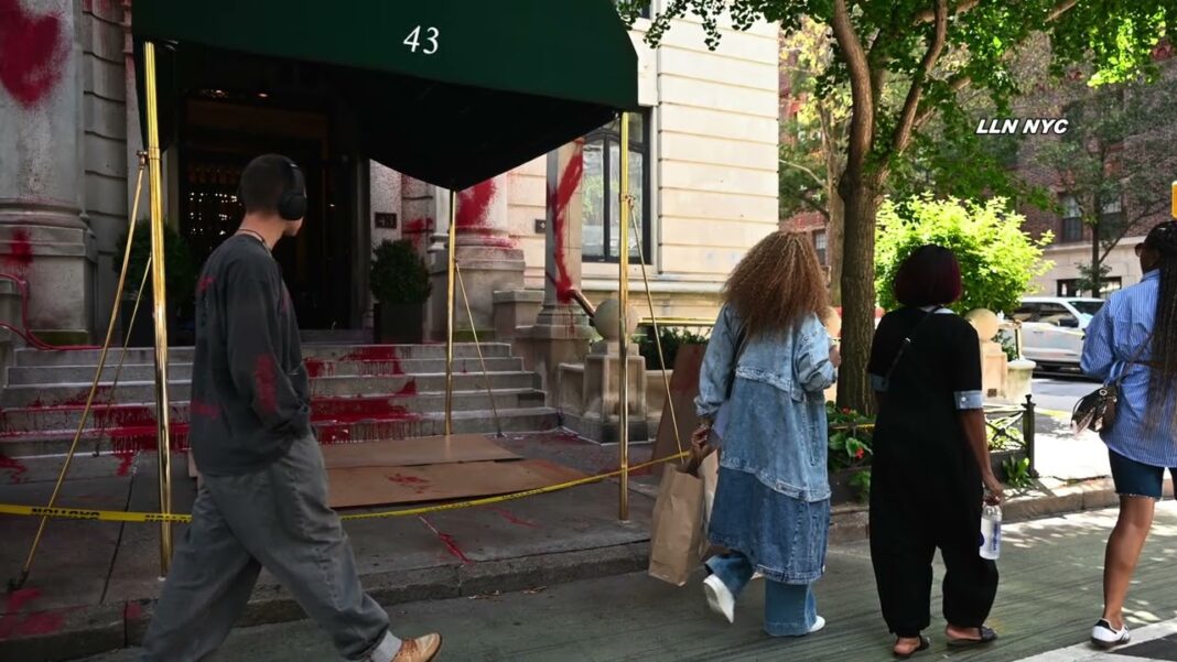 Police said the vandalism, discovered at around 3 a.m. outside the building near East 11th Street, covered the front steps, walls, sidewalk, and lamp fixtures. Residents of the luxury residence called authorities after stumbling upon the damage later that morning. As of Friday evening, no arrests had been made, though investigators believe the attack fits into a broader pattern of harassment directed at prominent cultural and media figures accused by activists of complicity in Israel’s war against Hamas.
