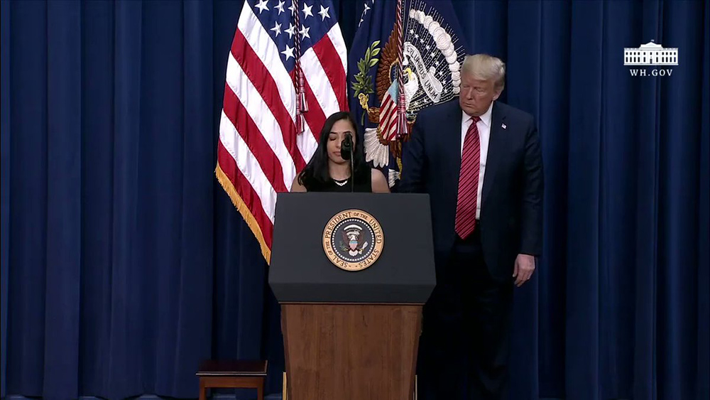 Daria Ortiz, 19, one of victim Maria Fuertes’ grandchildren, spoke at the behest of President Trump during an event focusing on border security with members of the Border Patrol agents union.