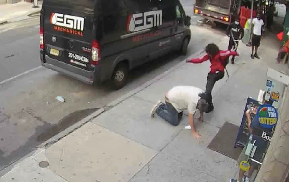 The suspect — whom police sources identified as 20-year-old Masterjadin Roman — then allegedly throws what appears to be a bottle at the retired officer, the Post said.
