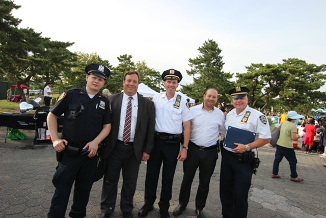 Turtle Circle at Midland Beach was fill of excitement and joy as droves of Staten Islanders joined the NYPD to celebrate the National Night Out Against Crime. Mendy Mirocznik, president, Staten Island Council of Jewish Organizations, (COJO), and Ari Weiss, COJO security chairman and coordinator, Staten Island Shomrim, represented COJO at this important event.