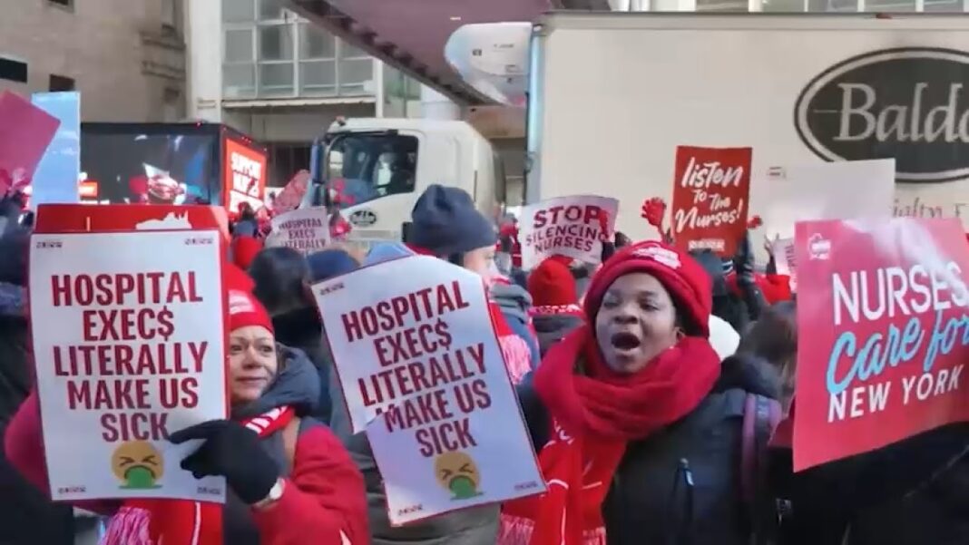 Union members have been picketing in front of some of the largest privately-run hospitals in the city, just as the region endured some of the most frigid temperatures seen in years.