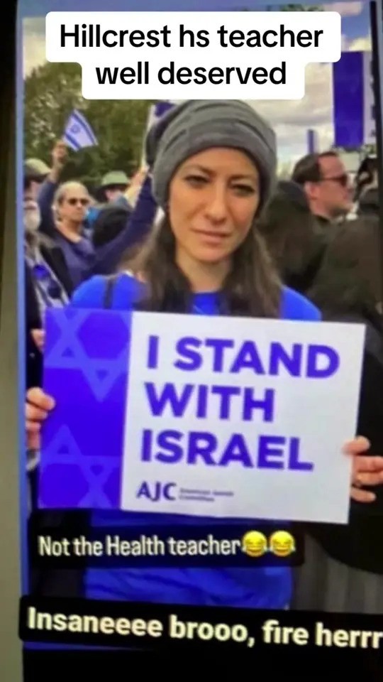 A Jewish teacher had to hide in her office while the students demanded she be fired for attending a pro-Israel rally.