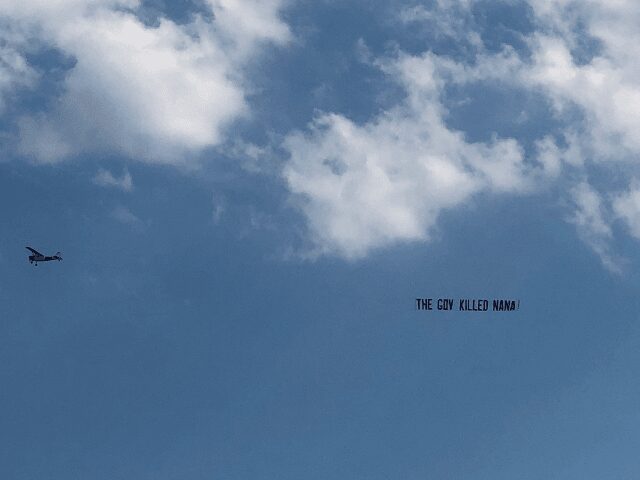 The banner, towed behind a small propeller plane, read like a shoreline advertisement, except with the words, “THE GOV KILLED NANA.”