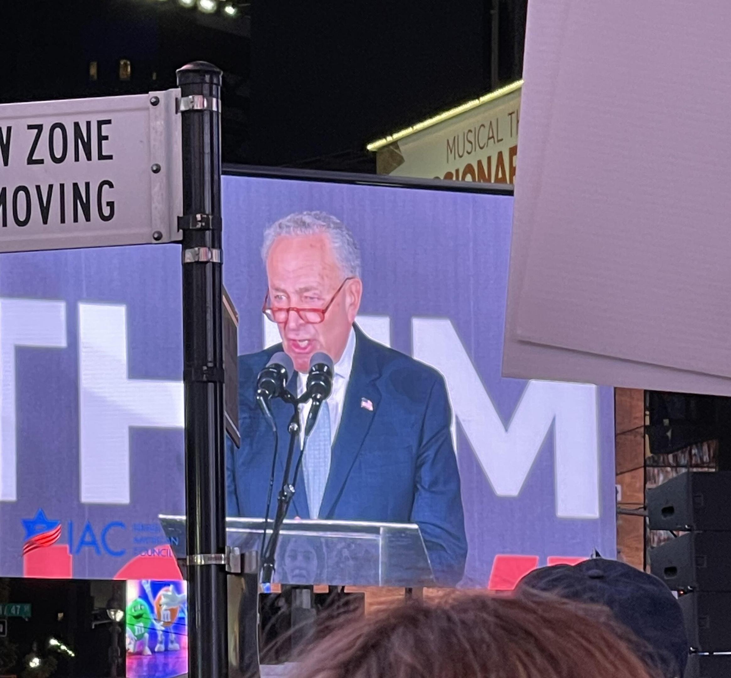 Prominent speakers at the event included New York’s Senator Chuck Schumer, who is the first Jewish Senate majority leader in history. He vowed to stand with Israel and oppose Hamas.