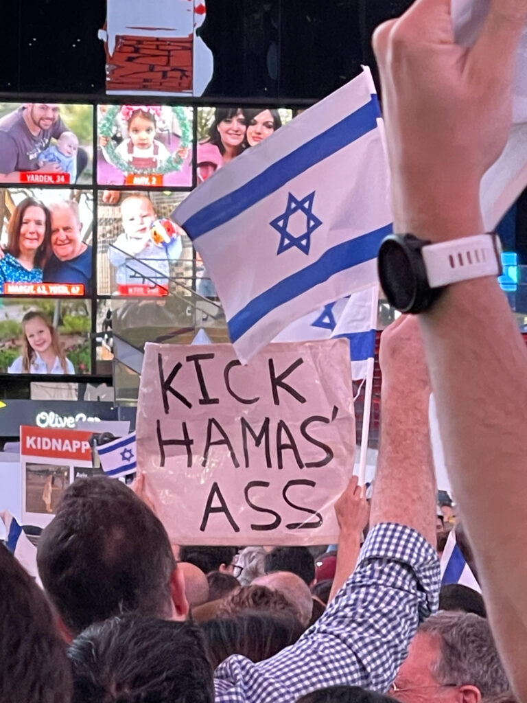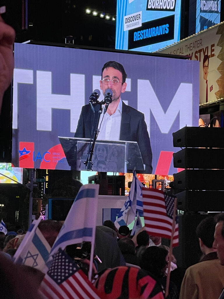 The rally in Times Square was organized by the nonprofit Israeli American Council, which represents Israeli Americans in the United States as well as the Jewish Community Relations Council.