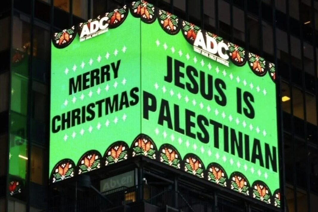 Two billboards displayed in Times Square were paid for by the American-Arab Anti-Discrimination Committee. One states: “Jesus is Palestinian, Merry Christmas.” A second featured a Quranic verse describing the birth of Jesus.