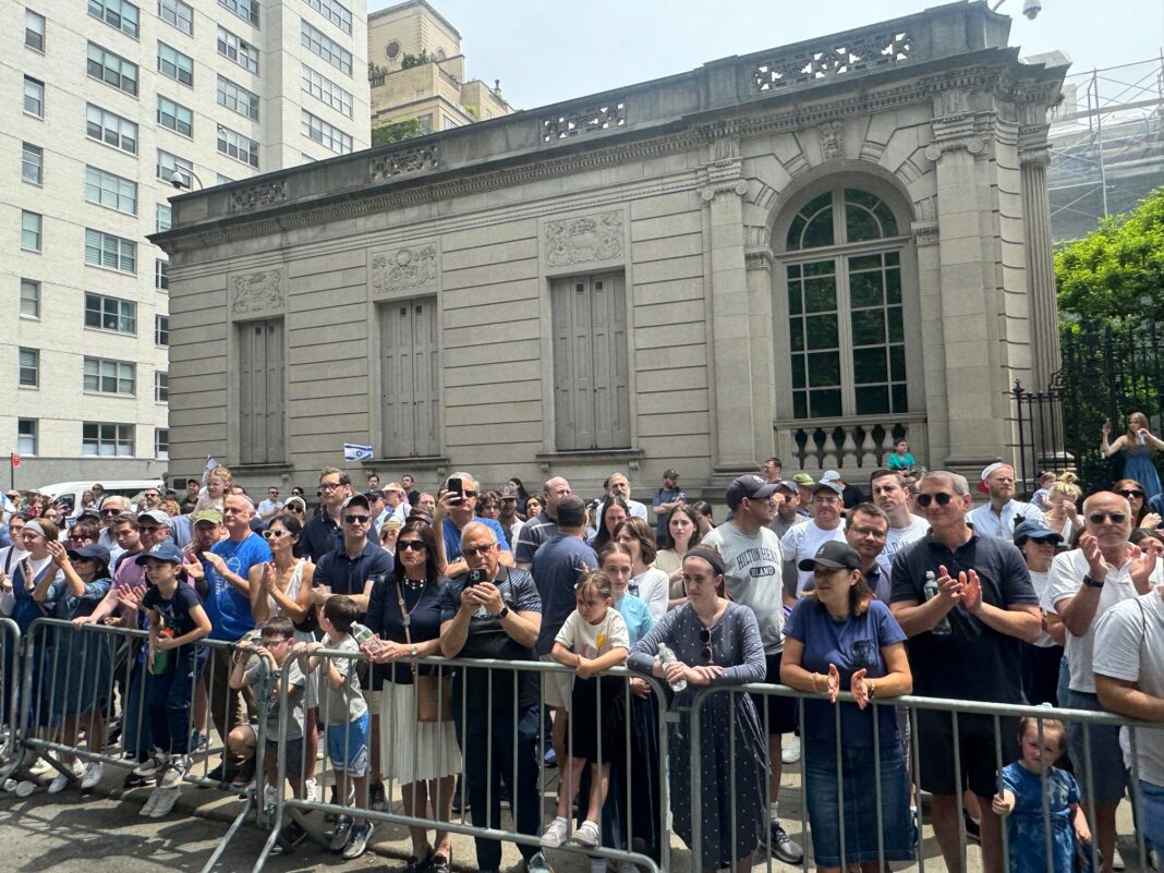 Despite one crazy masked man carrying a sign calling to “kill the hostages now” the parade largely went off without a hitch. As far as I could tell most of the crowd including the schools were orthodox as Ramaz, Moriah, JCRC, HAFTR along with 200 other participating synagogues and schools came out in droves. In fact there seemed to be many more marchers than spectators perhaps due to the closed off streets, the hot weather, and the fear of pro-Palestinian marchers. I had the privilege of accompanying Grand Marshal Harley Lippman on the route-and it was an experience I will never forget. Harley is a diehard lover and advocate of Israel.