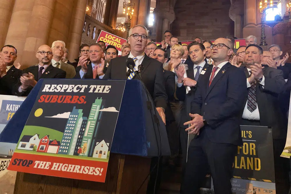 “We’re already a densely populated area. Where are you going to build?” asked Republican state Sen. Jack Martins, who noted his past support for affordable housing as a local mayor. “Are we going to start tearing down single-family homes to put up apartment buildings?”
