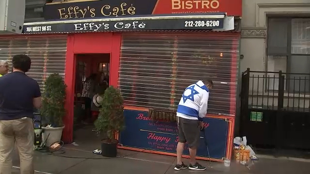 Manhattan Borough President Mark Levine and Upper West Side state Assembly candidate Micah Lasher visited Effy’s Café on Monday to express solidarity and denounce the incident as anti-Semitic hate. They joined locals in scrubbing away the offensive graffiti. Lasher emphasized the need to expand hate crime laws and ensure that New York remains a place where such acts are not tolerated.