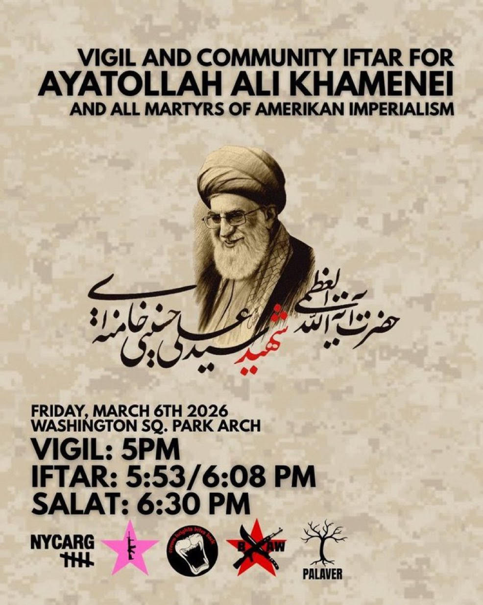 A vigil scheduled to take place later today in Manhattan’s Washington Square Park will likely ignite a fresh wave of controversy in New York City, as activists gather to mourn Iran’s late Supreme Leader Ayatollah Ali Khomeini only days after many Iranian Americans celebrated his death in the streets. The event, organized by several left-wing activist groups, will unfold against the backdrop of an escalating geopolitical confrontation between the United States, Israel, and the Islamic Republic of Iran, a conflict that has already reverberated deeply within communities across the United States.