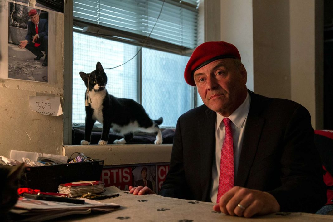 “Nobody does retail politics better than me, because I love it,” Sliwa told THE CITY, sitting in his studio apartment he shares with his wife, Nancy Regula, and 17 cats. “Even though, obviously, the enrollment differentials are great — don’t ever go to sleep on Curtis Sliwa.”