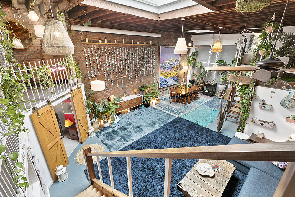 Mary K. Jacob, of The New York Post, writes the prewar unit has been marvelously renovated and features modern amenities with soaring 15-foot ceilings, exposed brick, a custom-built library replete with a sliding ladder, climbing plants and an expansive skylight. Back in Williamsburg, the home’s open kitchen comes complete with a breakfast nook, a mod Smeg refrigerator, open shelving, an industrial sink and a live-edge wooden island lit above by ceiling skylights, the listing says. Above, a mid-level mezzanine comes complete with an additional living room area and an office overlooking the lower level. Other features include a wet bar and an expandable dining table that offers seating for up to 22 people.