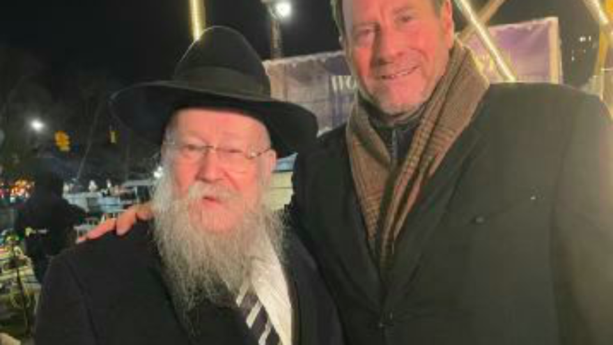 (JNS) Kent M. Swig, president of Swig Equities, on Wednesday joined Rabbi Shmuel Butman of the Lubavitch Youth Organization to light the world’s largest menorah on the fourth night of Hanukkah in New York City.