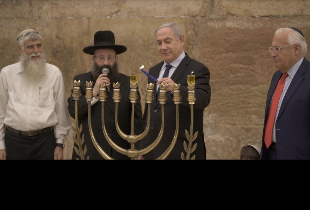 Prime Minister Netanyahu and his wife, along with U.S. Ambassador David Friedman and his family, lit the first Chanukah candle this evening at the Western Wall Plaza with Rabbi of the Western Wall and holy sites, Rabbi Shmuel Rabinowitz, and the Director of the Western Wall Heritage Foundation, Mordechai (Suli) Eliav.