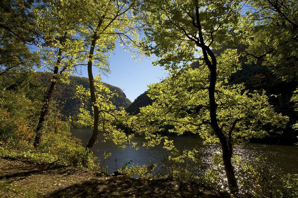 The town of Delaware Water Gap is nestled into the national recreation area, where you can hike a section of the Appalachian Trail to get an up-close view of the autumn scenery. The Mount Minsi Trail follows the AT’s white blazes to summit the peak for a stunning overlook of red, yellow, and orange changing leaves. Back in town, enjoy a great meal or catch a weekend jazz performance at the Deer Head Inn.