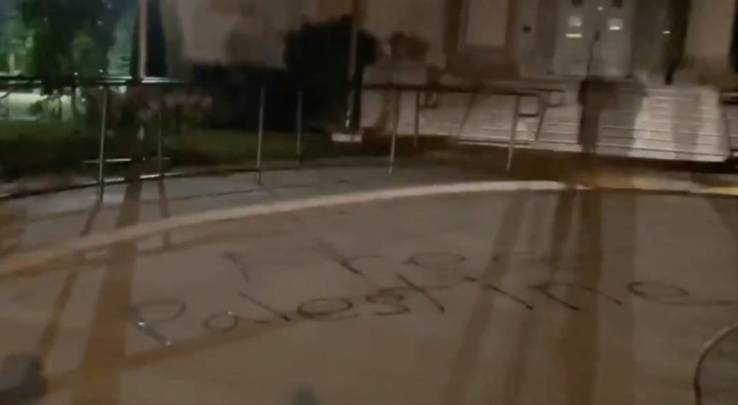 A reporter for the right-wing news site Townhall posted a video of a Black Lives Matter activist spray-painting the words “Free Palestine” on the driveway of Beth Hillel Temple, a Reform synagogue.