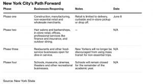 This chart fully explains the 4 Phases of re-opening as determined by NY State