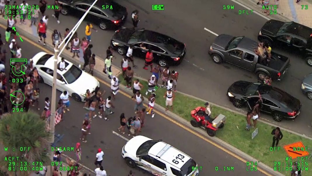 Helicopter footage released by the Sheriff’s Office shows “a couple hundred people” surrounding the car parked on State Road A1A in front of a Burger King and dozens more gathered on the sidewalk.