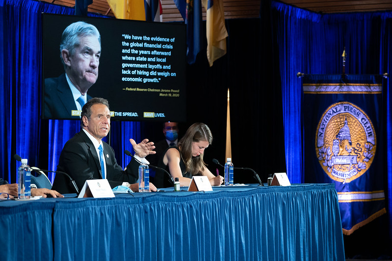 Cuomo met with President Trump today to discuss a coronavirus relief bill .Amid the ongoing COVID-19 pandemic, Governor Andrew M. Cuomo today called on the U.S. Senate to pass a coronavirus relief bill that helps all Americans and provides unrestricted fiscal support for states. The next bill should focus on funding state and local governments, working families, state testing and tracing efforts and a real economic stimulus with no handouts to corporations who do not protect their workers and only enrich executives or shareholders. The House of Representatives has already passed a bill that includes $500 billion for states and $375 billion for locals; Medicaid funding for the most vulnerable; increased SNAP food assistance; 100 percent FEMA federal assistance; funding for testing; and repeals SALT cap to help states most affected by COVID-19.