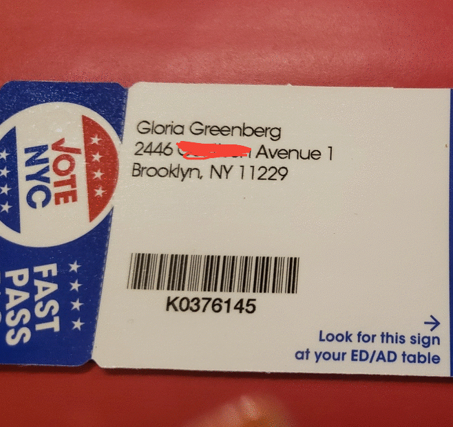 Below is photo proof of the express voting pass and the death certificate of the wonderful Gloria Greenberg, who lived to 95 years old.