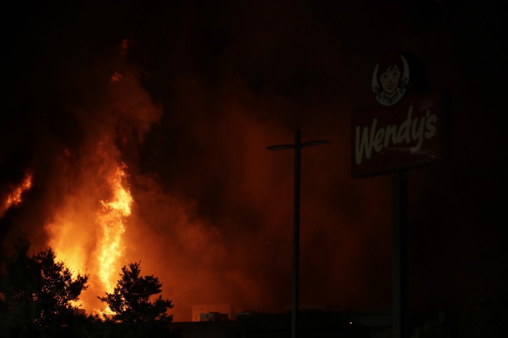 Meanwhile, authorities announced a $10,000 reward for information finding those responsible for setting fire to the Wendy’s restaurant at the shooting scene. Flames gutted the restaurant late Saturday after demonstrations grew turbulent. The protests prompted 36 arrests.