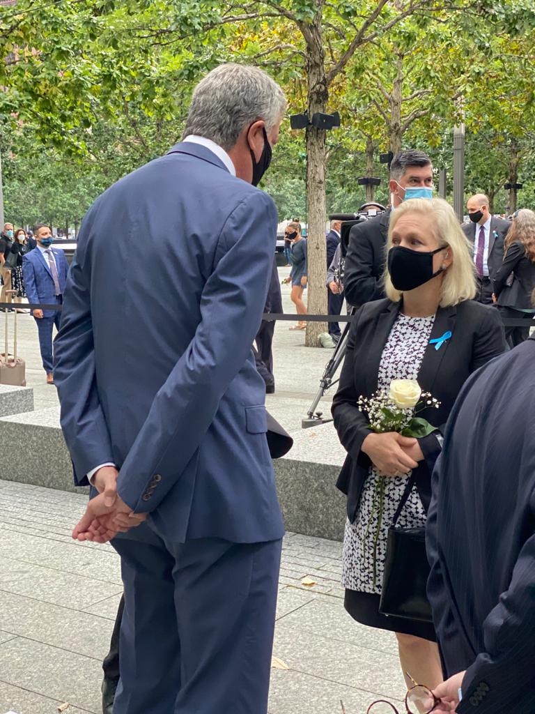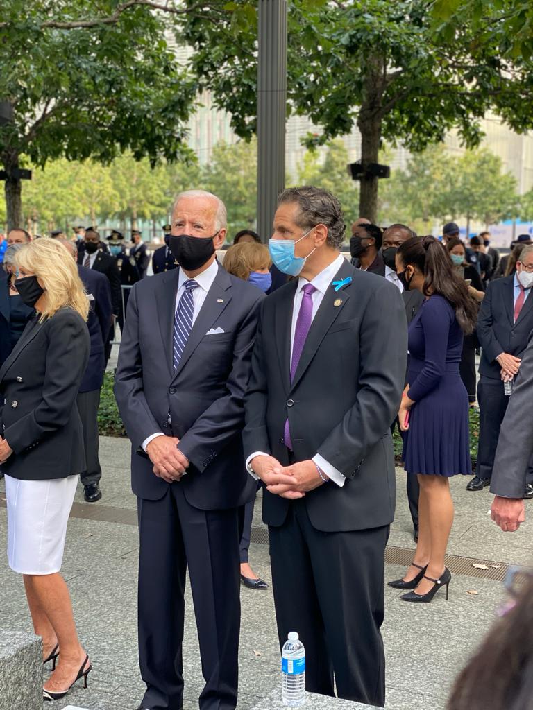 It was a different display in Lower Manhattan at the Ground Zero ceremony, where public officials wee not part of the program. Biden nonetheless consoled family members in the audience. At one point during the ceremony, as Biden was listening to the reading of the names of the victims, he spotted a woman crying in the crowd. Amanda Barreto, 27, of Teaneck, New Jersey, lost her godmother and aunt in the 9/11 attacks.