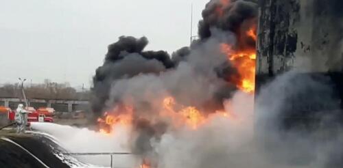 Insane. The fire at the oil facility in Belgorod was reportedly a result of an attack by two Ukrainian helicopters apparently firing S-8 rockets. https://t.co/kx5wDfJ88C pic.twitter.com/HhHkirNJWk