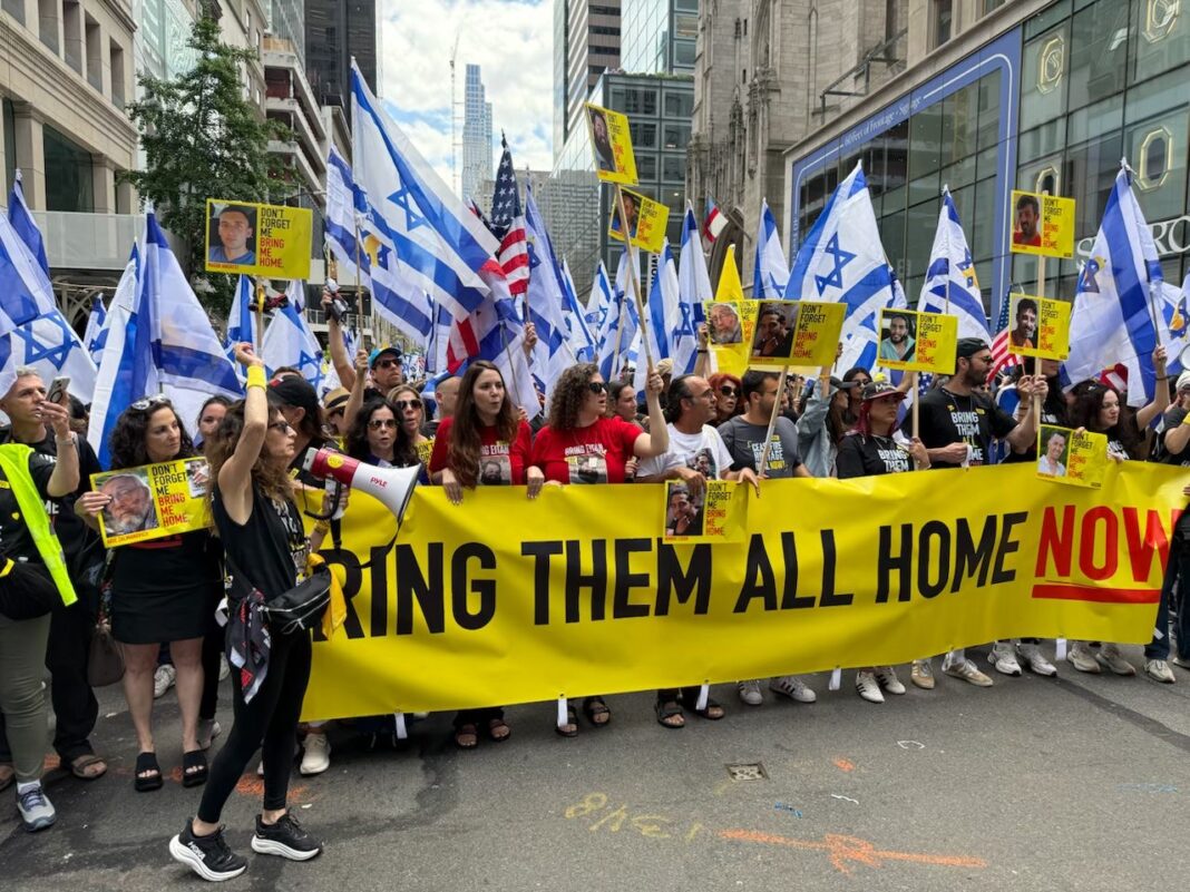 New York Governor Kathy Hochul offered strong remarks from the podium. Quoting President John F. Kennedy, she reminded the crowd that Israel had long been recognized as a “resilient people”—a truth tested repeatedly, and especially so in recent months. “Never in my wildest dreams did I think there would still be [58] hostages,” she said. “My God, we will not rest until ‘bring them home’ is a reality.”
