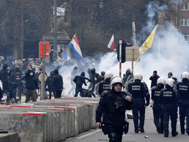 Belgian police were filmed using water cannons, pepper spray, and batons on protestors demonstrating against Chinese coronavirus restrictions and mandatory vaccinations in European Union nations in the bloc’s capital city of Brussels.
