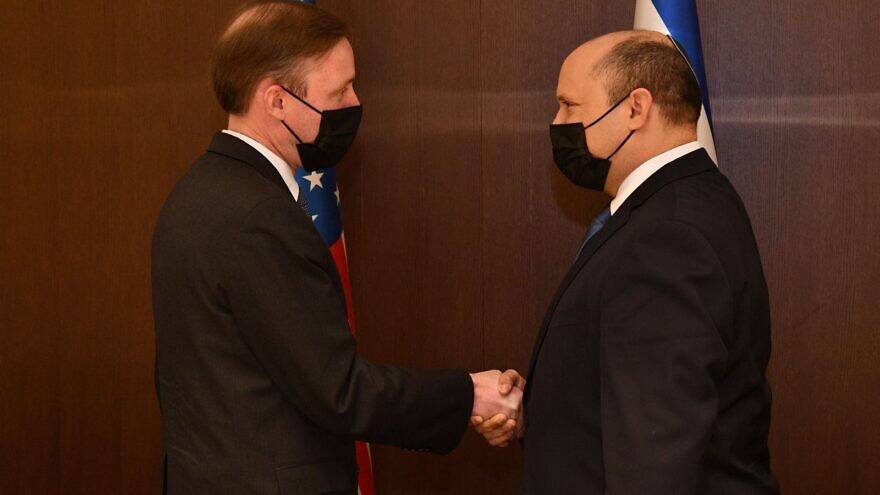 ( JNS) Israeli Prime Minister Naftali Bennett met with U.S. National Security Advisor Jake Sullivan on Wednesday at the Prime Minister’s Office in Jerusalem.