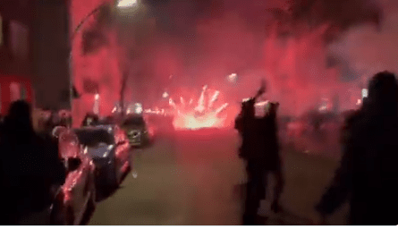 The police also reported that several cars, a truck, and a tree were set on fire during the chaos. The police, in turn, used pepper spray on some of the violent rioters and used water cannons to put out garbage cans and tires that were set on fire in the streets.