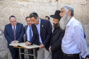 The rabbi of the Western Wall and the holy sites, Rabbi Shmuel Rabinowitz, received the governor personally and they both read chapter 21 of Psalms. Governor Cuomo then placed a note between the stones of the Western Wall.