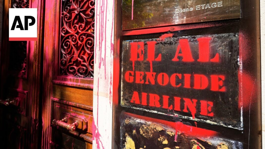 According to a report that appeared in The Jewish News Syndicate (JNS), the attack was carried out using stencils and spray paint to inscribe messages such as “El Al Genocide Airline” and “Palestine will live, Palestine will win.” The perpetrators also hurled red paint across the entrance, symbolically invoking blood imagery in a stunt that Israeli officials have linked to intensifying waves of antisemitism and hostility toward Israel in Europe.