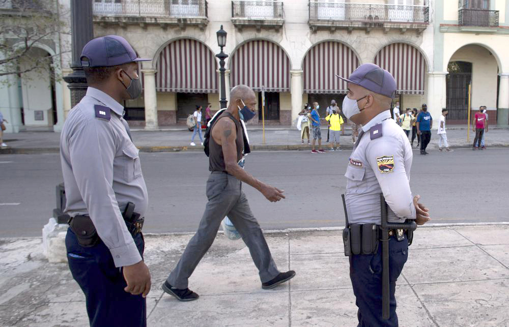 Cuban police are out in force on the country’s streets as the president is accusing Cuban Americans of using social media to spur a rare outpouring of weekend protests over high prices and food shortages.