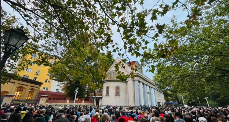 Images from the scene circulating on social media show hundreds of local Germans, including Jews and non-Jews, gathered on the street outside of the house of worship.