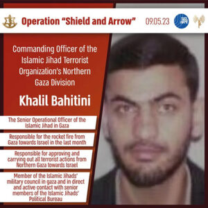 After the elimination of Tayseer Jabri during operation “Breaking Dawn” in August 2022, Bahitini took over his position. Bahitini was a member of the terrorist organization’s military council and had direct and active contact with senior members of the Islamic Jihad’s Political Bureau.