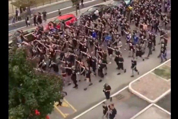 The US organization StopAntisemitism tweeted: “Horrifying- Croatian soccer fans (Dinamo Zagreb) marching throughout the streets of Milan throwing up Nazi salutes. The Ustaše would be very proud.”