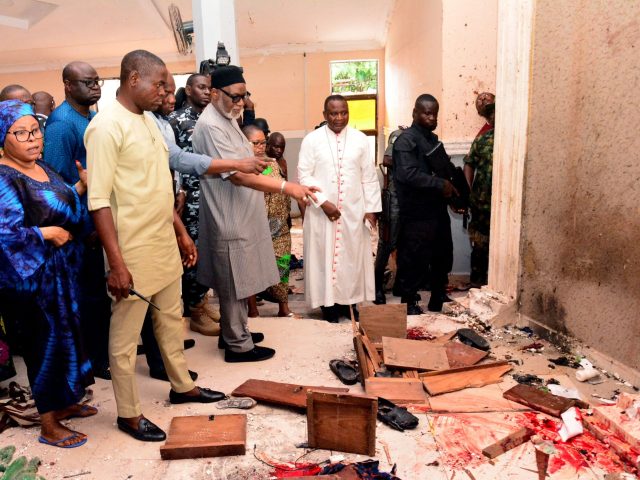 Presumed jihadists stormed a Catholic church in southwest Nigeria Sunday and opened fire on worshipers, killing at least 50 and wounding dozens more.