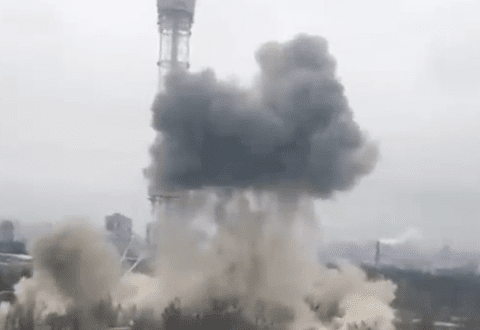 Slow motion missile strike on Kiev TV towerpic.twitter.com/lajsvlqiPF