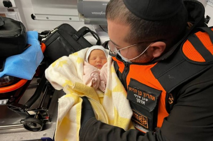 The mission was accomplished, the baby crossed the border. United Hatzalah volunteer EMT Vicky Tiferet, a mother of 4, and I myself, received the baby.