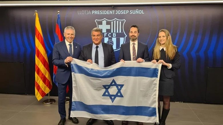 The Israeli diplomats presented Laporta with an Israeli flag and thanked him for years of support for Israel, friendship and joint activity in building a bridge between nations through sport.