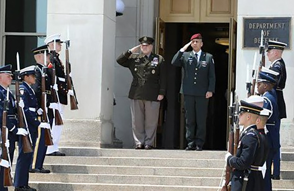 TPS reported that the Chief of Staff is the guest of the Chairman of the Joint Chiefs of Staff, General Mark Milley, and met with Secretary of Defense Lloyd Austin. The meetings included a professional panel chaired by the Joint Chiefs of Staff and other senior members of the IDF and US Army, in addition to a series of intelligence and operational reviews.