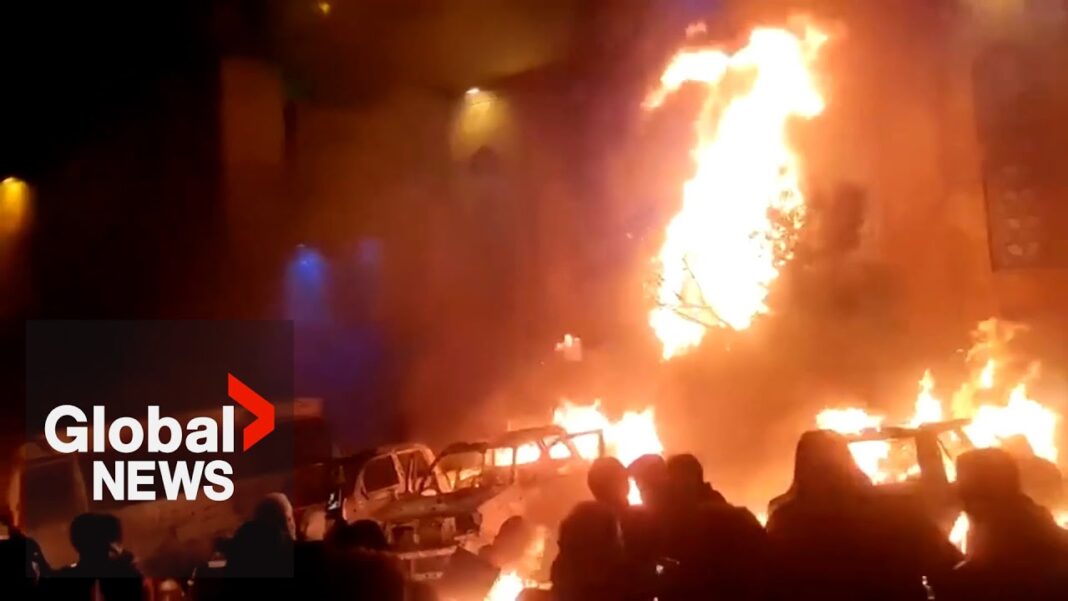 In Mashhad, Khamenei’s hometown, crowds marched through smoke-filled streets as fires burned around them — a tableau of rebellion in the city that symbolizes the very core of the Islamic Republic’s authority.