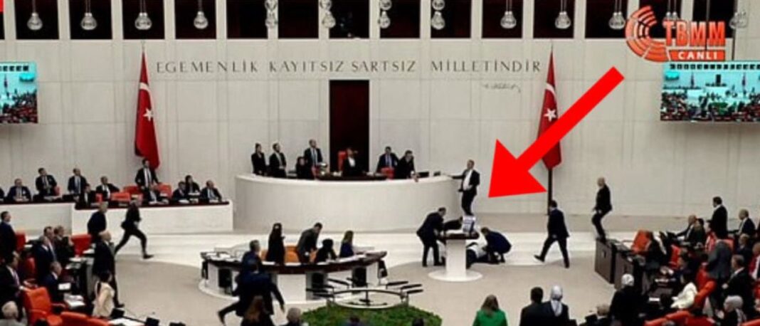 Video shows Islamist party politician Hasan Bitmez fall to the floor following his intense speech in the General Assembly Hall in Ankara, according to the New York Post.